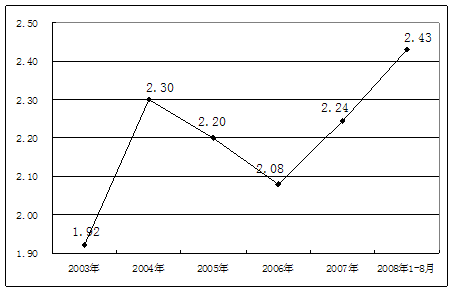 四、2003-2008年1-8月 行业 流动资产周转次数