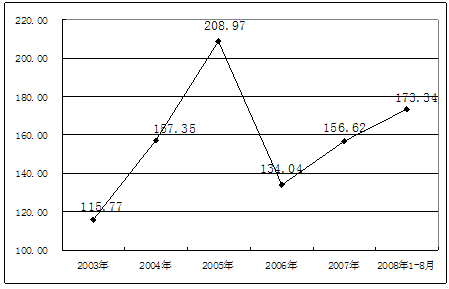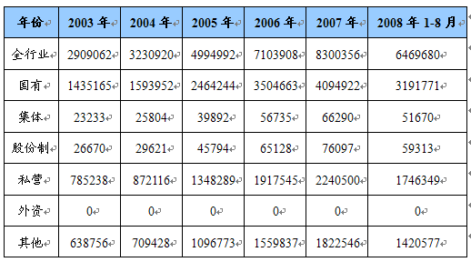 第二节 2003-2008年1-8月中国钨钼矿采选 行业 固定资产状况 分析