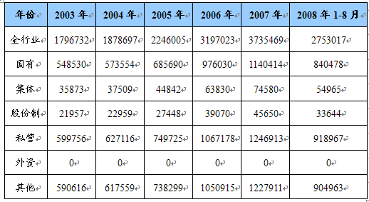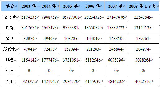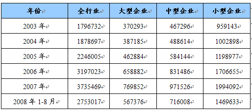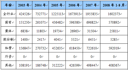 一、2003-2008年1-8月 行业 固定资产净值 分析