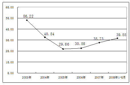 第六节 2003-2008年1-8月中国钨钼矿采选 行业 资产负债率 分析