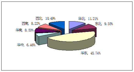 这种区域电力需求格局也就进一步决定了变压器油色谱在线监测系统需求区域市场分布情况,华东地区占据了市场需求的45%左右。