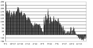 从图中可以看出,随着世界精铜需求的放缓,交易所铜库存2006年下半年以来一直呈上升趋势,与此同时,现货市场并未出现紧张局势,LME三个月期铜的升贴水值并不紧张,相反,进入2006年11月份反而出现多年未见的贴水。库存的持续增加与贴水值的出现在很大程度上制约了铜价上涨的空间与能量。