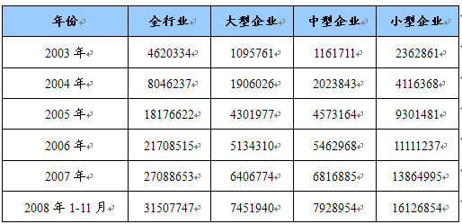 第四节 2003-2008年1-11月 行业 工业总产值