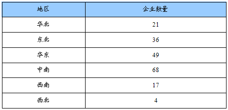 企业数量地区分布状况