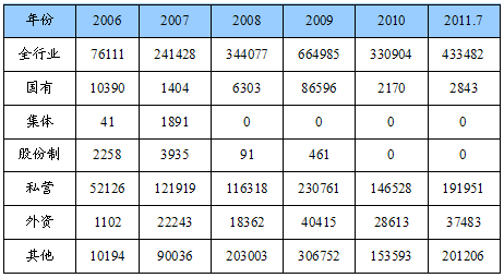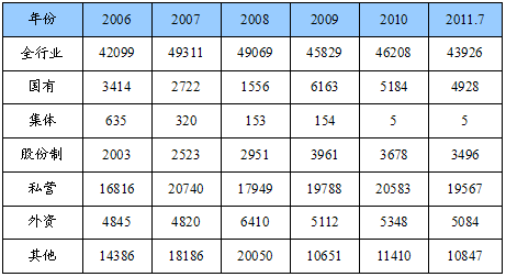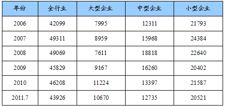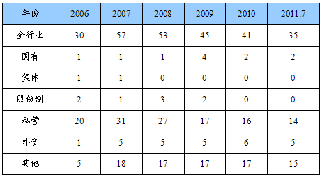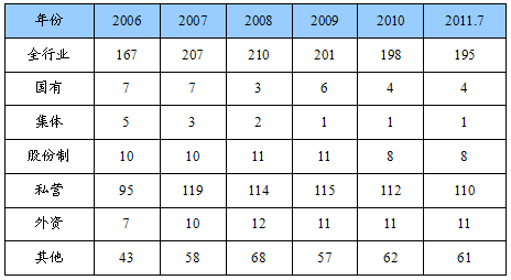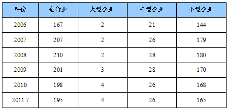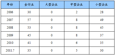 第一节 2006-2011年7月 行业 企业数量状况
