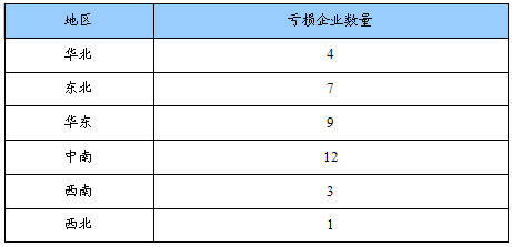 亏损企业数量地区分布状况