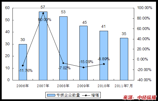 第二节 2006-2011年7月 行业 亏损企业数量状况