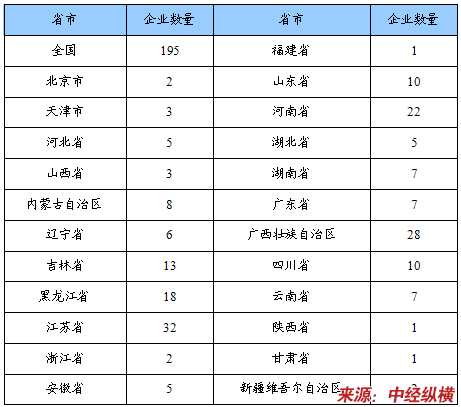 企业数量省市分布状况