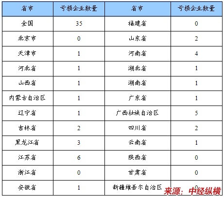 亏损企业数量省市分布状况