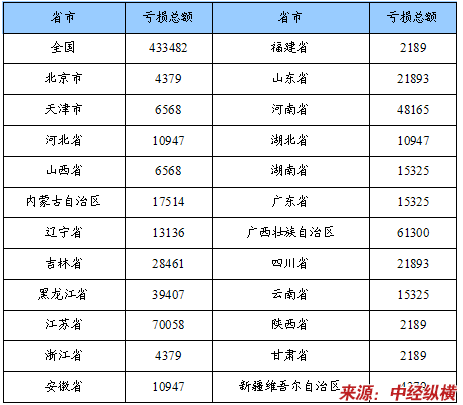 亏损总额省市分布状况