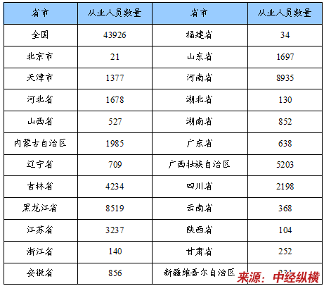 从业人员数量省市分布状况