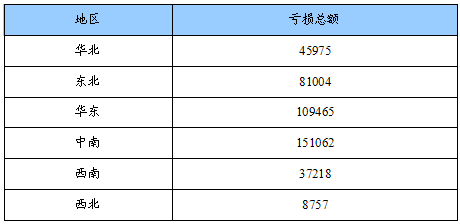 亏损总额地区分布状况