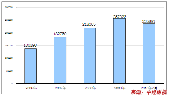 | 年份 | 2006年 | 2007年 | 2008年 | 2009年 | 2010年2月 |