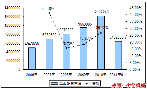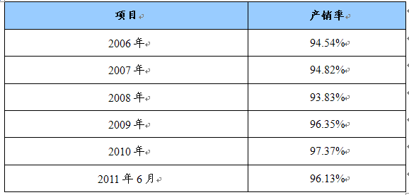 第三节 2006-2011年6月(按季度更新)中国石墨、滑石采选 行业 产销率调查