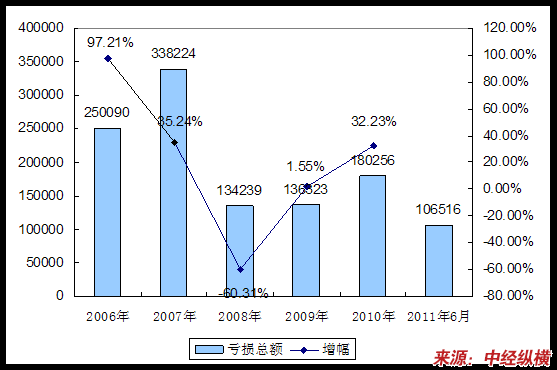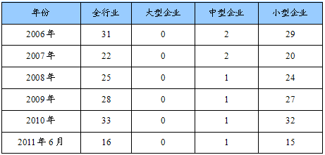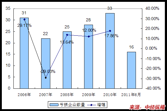 第二节 2006-2011年6月 行业 亏损企业数量状况