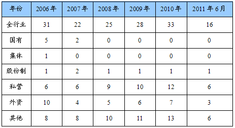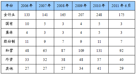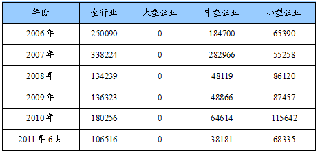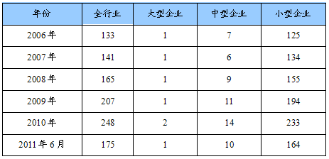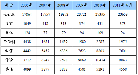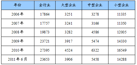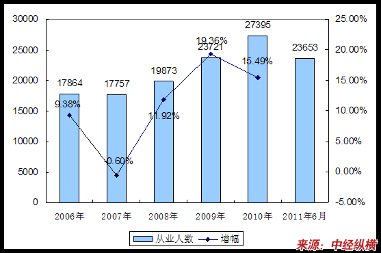 第四节 2006-2011年6月 行业 从业人员数量状况