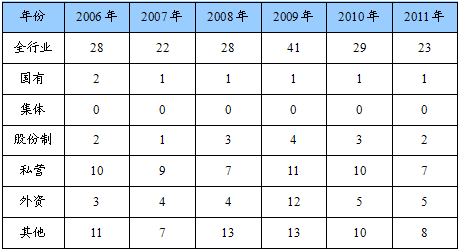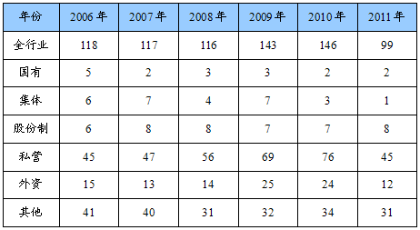 第一节 2006-2011年 行业 企业数量状况