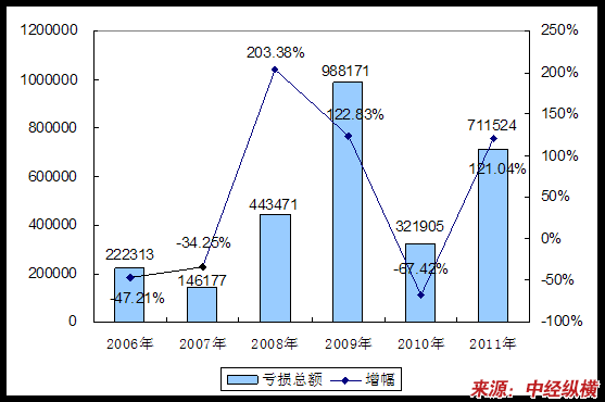第三节 2006-2011年 行业 亏损总额