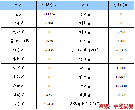 亏损总额省市分布状况