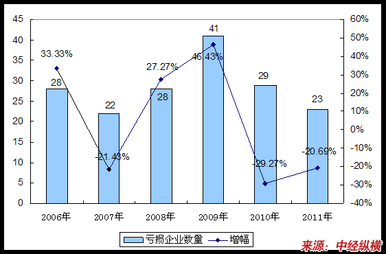 第二节 2006-2011年 行业 亏损企业数量状况