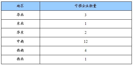 亏损企业数量地区分布状况