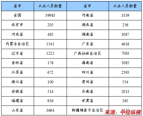 从业人员数量省市分布状况
