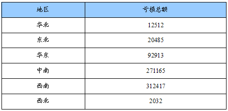 亏损总额地区分布状况
