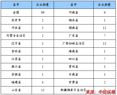 企业数量省市分布状况