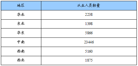 从业人员数量地区分布状况