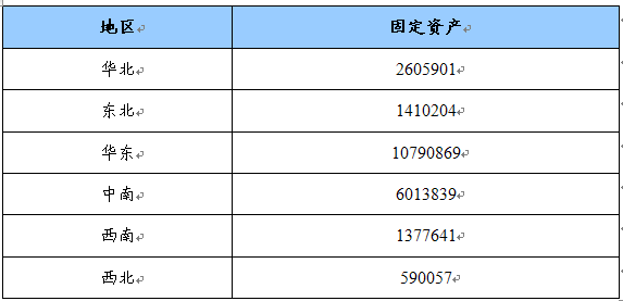 固定资产地区分布状况 单位:千元