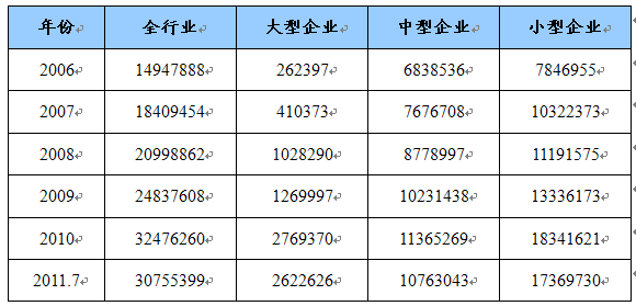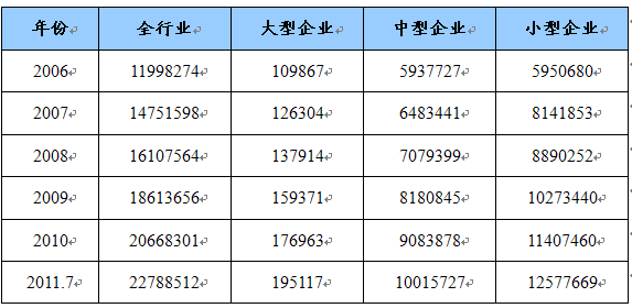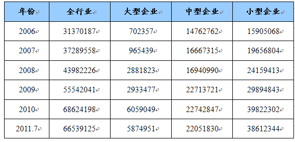 第一节 2006-2011年7月 行业 总资产状况