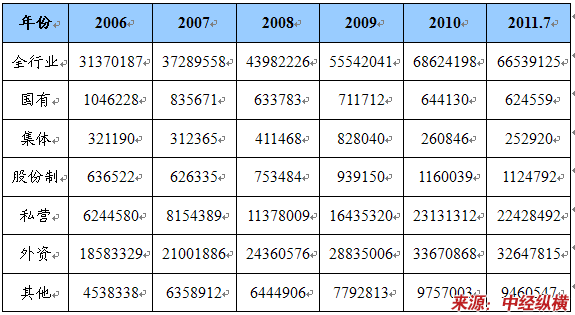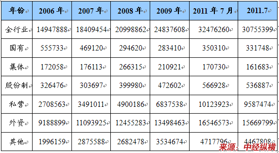 第二节 2006-2011年7月 行业 固定资产状况