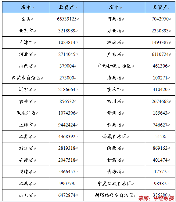 总资产省市分布状况 单位:千元