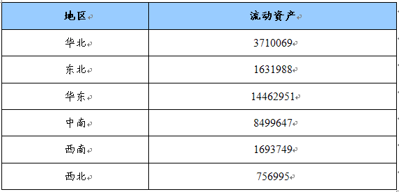 流动资产地区分布状况 单位:千元