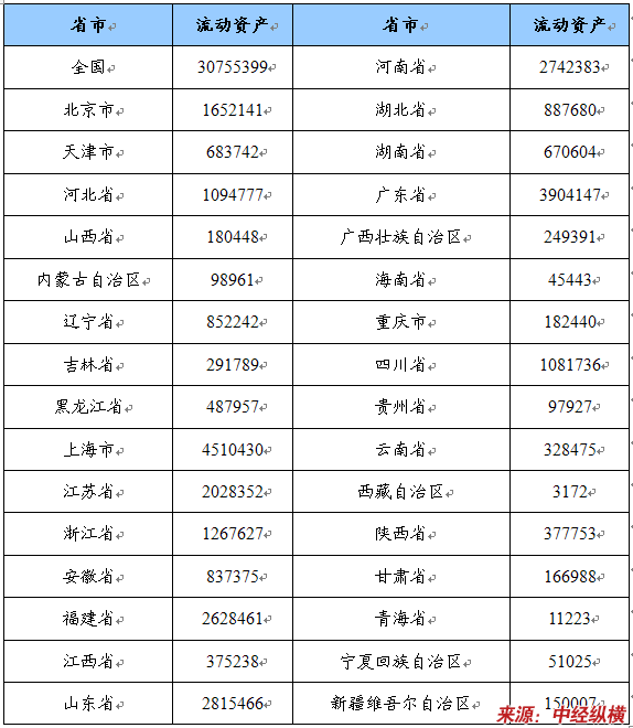 流动资产省市分布状况 单位:千元