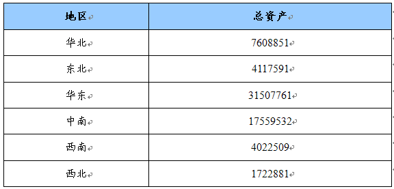 总资产地区分布状况 单位:千元