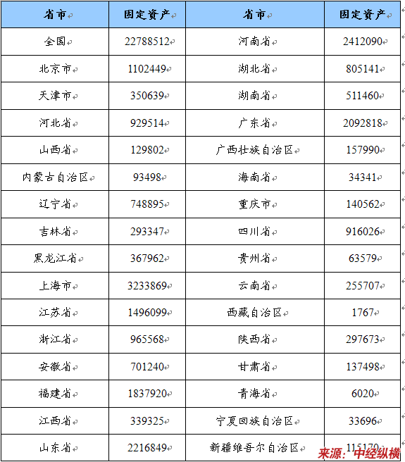固定资产省市分布状况 单位:千元