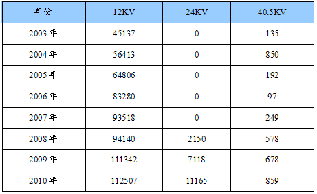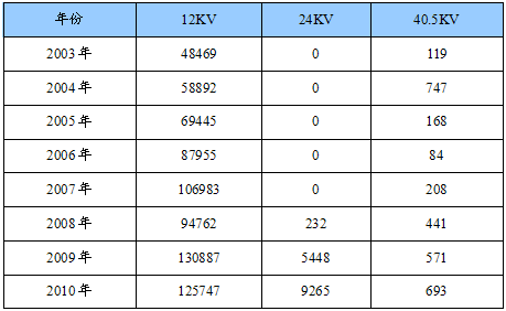 2003-2010年中国环网柜产品构成表