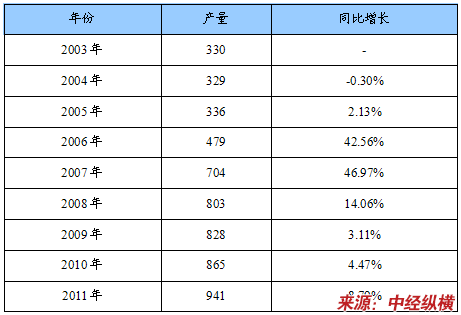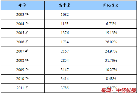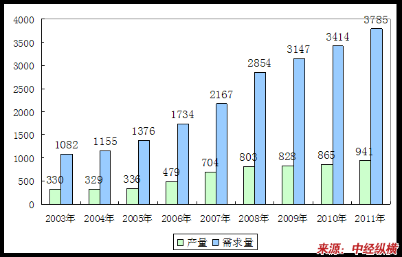 2003-2011年中国牙科拔髓针产量、需求量对比图