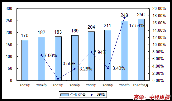 2003-2010年1-8月家用电风扇制造 行业 企业数量发展状况