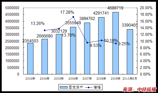 2003-2010年1-8月家用电风扇制造 行业 固定资产发展状况