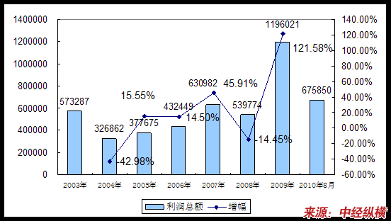 2003-2010年1-8月家用电风扇制造 行业 利润总额发展状况