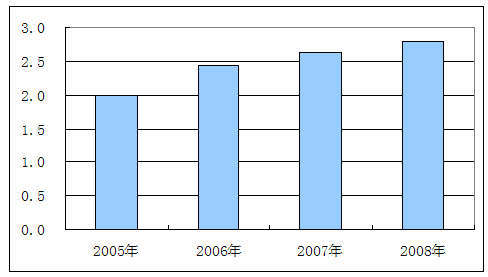 2005—2008年我国木糖醇出口情况 单位:万吨