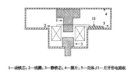 混合式机电喇叭机械结构较机械触点式喇叭增加一月牙形电路板用于安装电子开关。