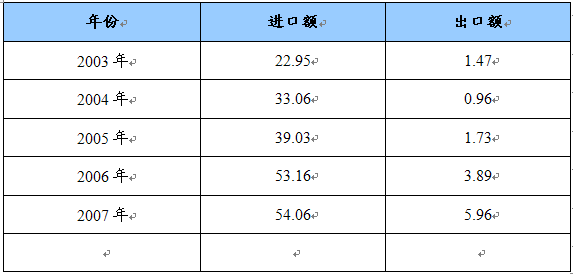 2004-2007年我国数控机床进出口额统计 单位:亿美元