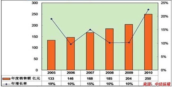 2010年度中国LED封装市场规模及增长率变化