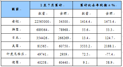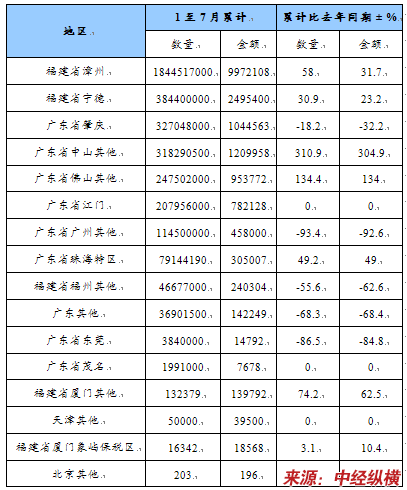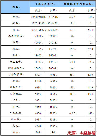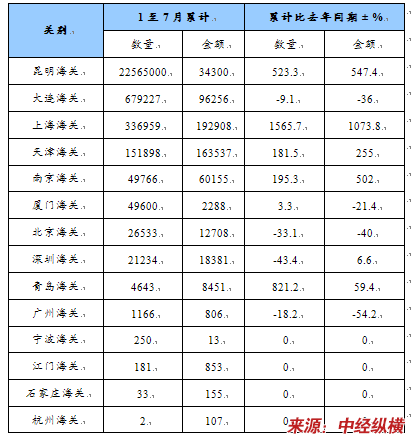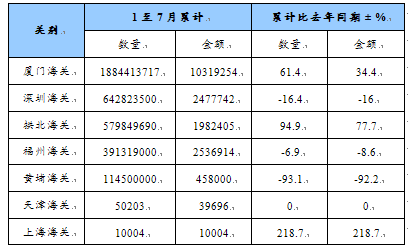 第四节 中国各种天然砂,但第26章的含金属矿砂除外分海关和国别进出口统计