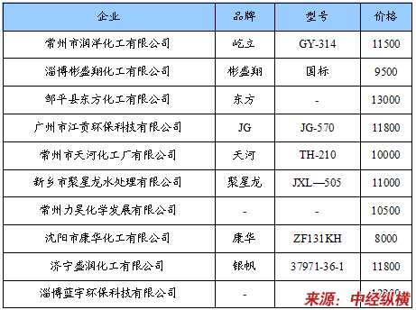 从各厂家的报价看,PBTC的价格基本在11000~12000元/吨,波动浮动不大,我国目前PBTC的生产技术已经有了明显提高,产品价格也保持了比较稳定的状态。