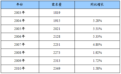 2003-2010年PBTC需求量及其增长 分析