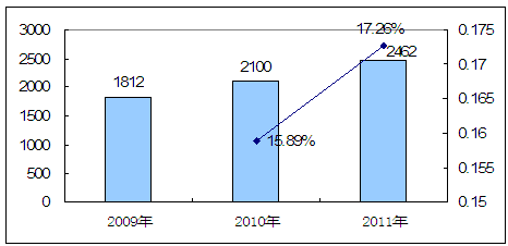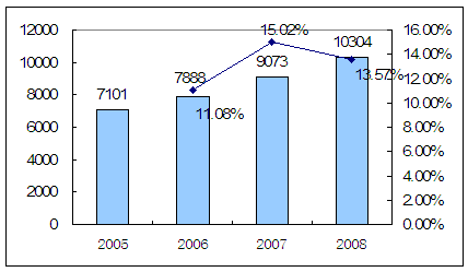 2007年中国现代信息服务业产值达到9073.3亿元,同比增长15%,在良好的政策环境和需求增长推动下,产业整体呈现增速发展的势头。